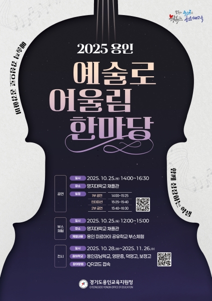 [PEDIEN] 용인교육지원청은 오는 10월 25일 명지대학교 채플관에서 ‘2025 용인 예술로 어울림한마당’을 개최한다.