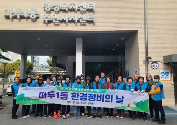 김동숙 마두1동장은 “바쁜 와중에도 주민들이 안전한 환경에서 생활할 수 있도록 취약지역 환경정비에 솔선수범해 준 통장님들께 감사하다”며 “살기 좋은 마두1동을 만드는 데 함께하며 노력하겠다”고 말했다.