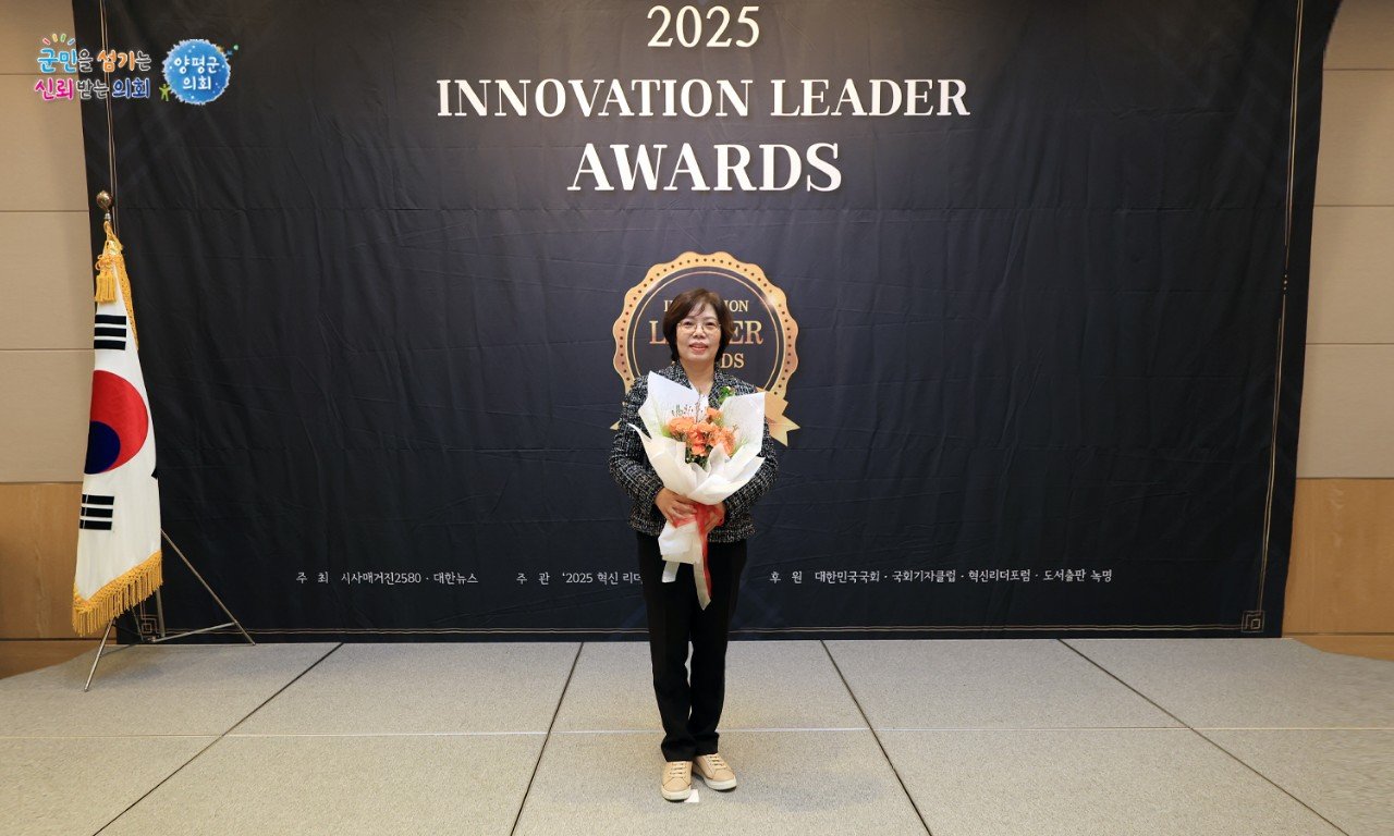 [PEDIEN] 오혜자 양평군의회 의장이 '2025 혁신리더 올해를 빛낸 인물' 시상식에서 의정대상을 수상하는 영예를 안았다.