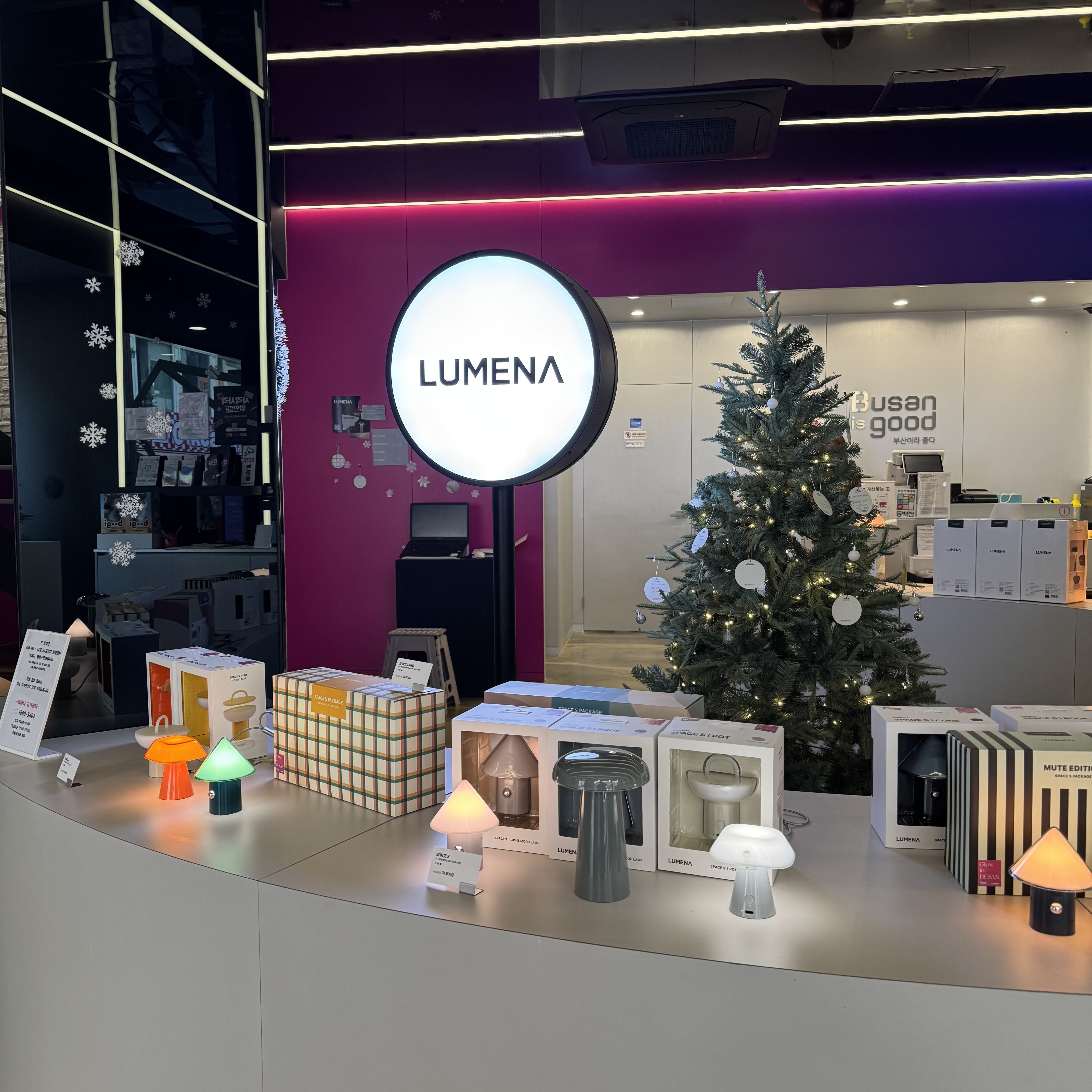 루메나는 감성적인 디자인의 조명으로 국내외에서 인정받는 부산의 대표적인 디자인 기업이다. 이번 팝업에서는 루메나의 대표 조명 라인업인 SPACE 시리즈를 직접 체험할 수 있으며, 연말을 맞아 특별히 제작된 M3 테이블 램프 홀리데이 에디션과 SPACE S 미니 램프 모노·뮤트 에디션도 만나볼 수 있다.