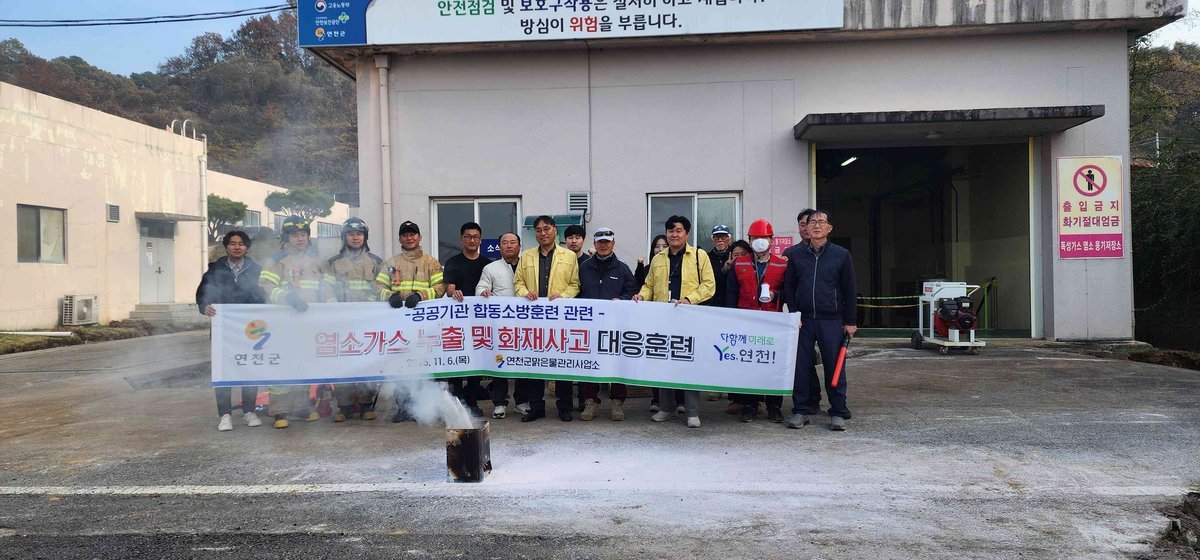 [PEDIEN] 연천군맑은물관리사업소가 연천소방서와 합동으로 염소가스 누출 및 화재 사고 대비 훈련을 6일 실시했다. 이번 훈련은 위기 상황 발생 시 대응 능력을 향상시키는 데 목적을 둔다.