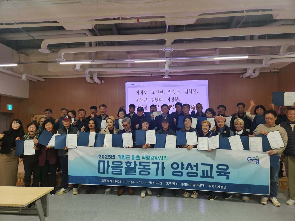 [PEDIEN] 가평군이 농촌 지역의 성장과 변화를 주도할 마을 활동가 양성 교육 수료식을 개최하고 42명의 활동가를 배출했다.