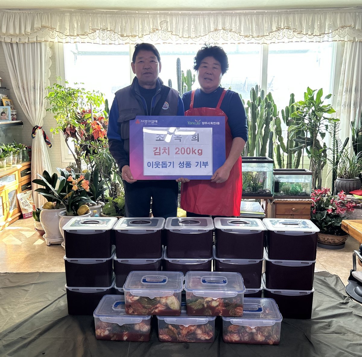조 전 부녀회장은 평소에도 손수 담근 김치와 고추장 등을 꾸준히 기부하며 지역 사회에 따뜻한 손길을 전해왔다.