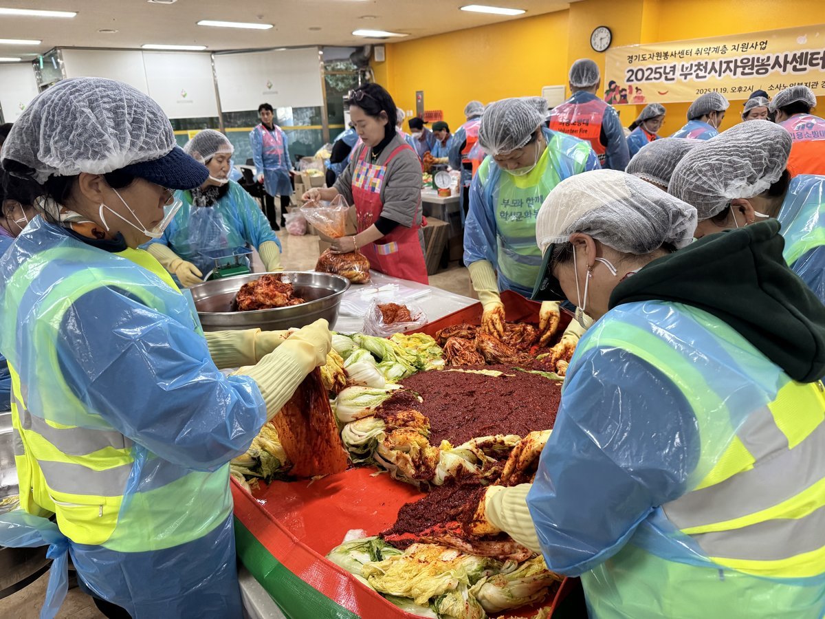 소사노인복지관 경로식당에 모인 40여 명의 자원봉사자들은 부천시자원봉사센터 동나눔터 리더, 부천의용소방대, 부천시 부모와 함께하는 학생문화봉사단 등으로 구성되어 김장김치를 직접 담그며 구슬땀을 흘렸다.