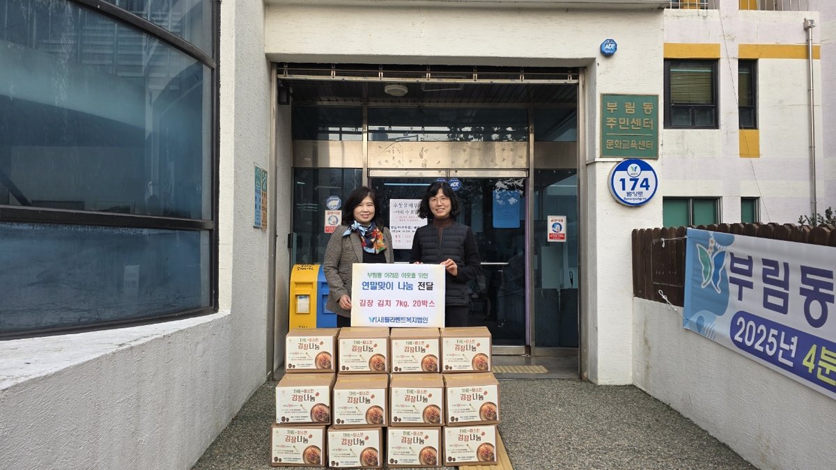 부림동에서는 필라멘트복지법인이 김장김치 7kg 20박스를 기부했다. 봉사자들이 직접 담근 김치는 부림동주민센터를 통해 관내 저소득층 가구에 전달될 예정이다. 필라멘트복지법인 서경애 대표는 “정성을 담아 만든 김치를 지역과 나눌 수 있어 기쁘다”고 소감을 밝혔다.