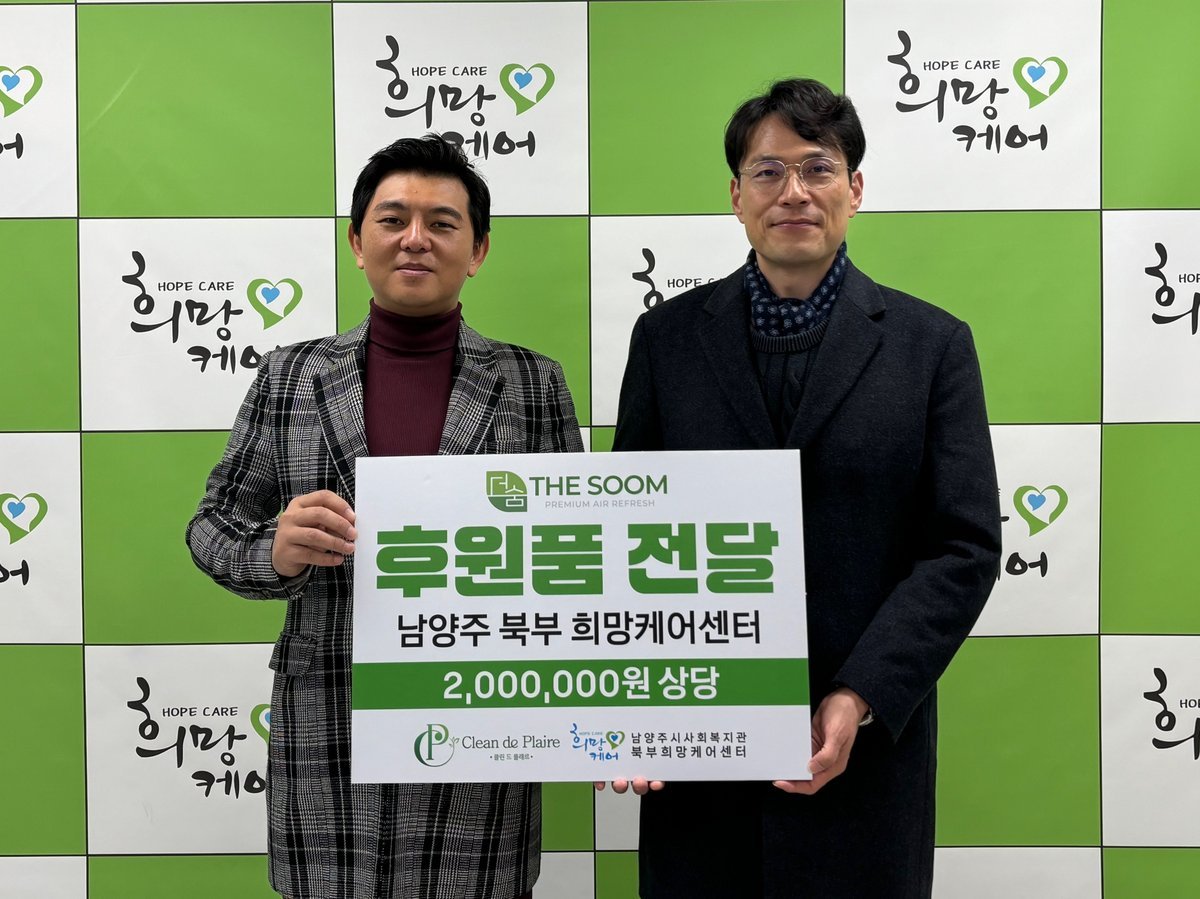 [PEDIEN] 오남읍 소재 기업 클린 드 플래르가 남양주시 북부희망케어센터에 200만원 상당의 천연탈취제 120개를 기증했다.