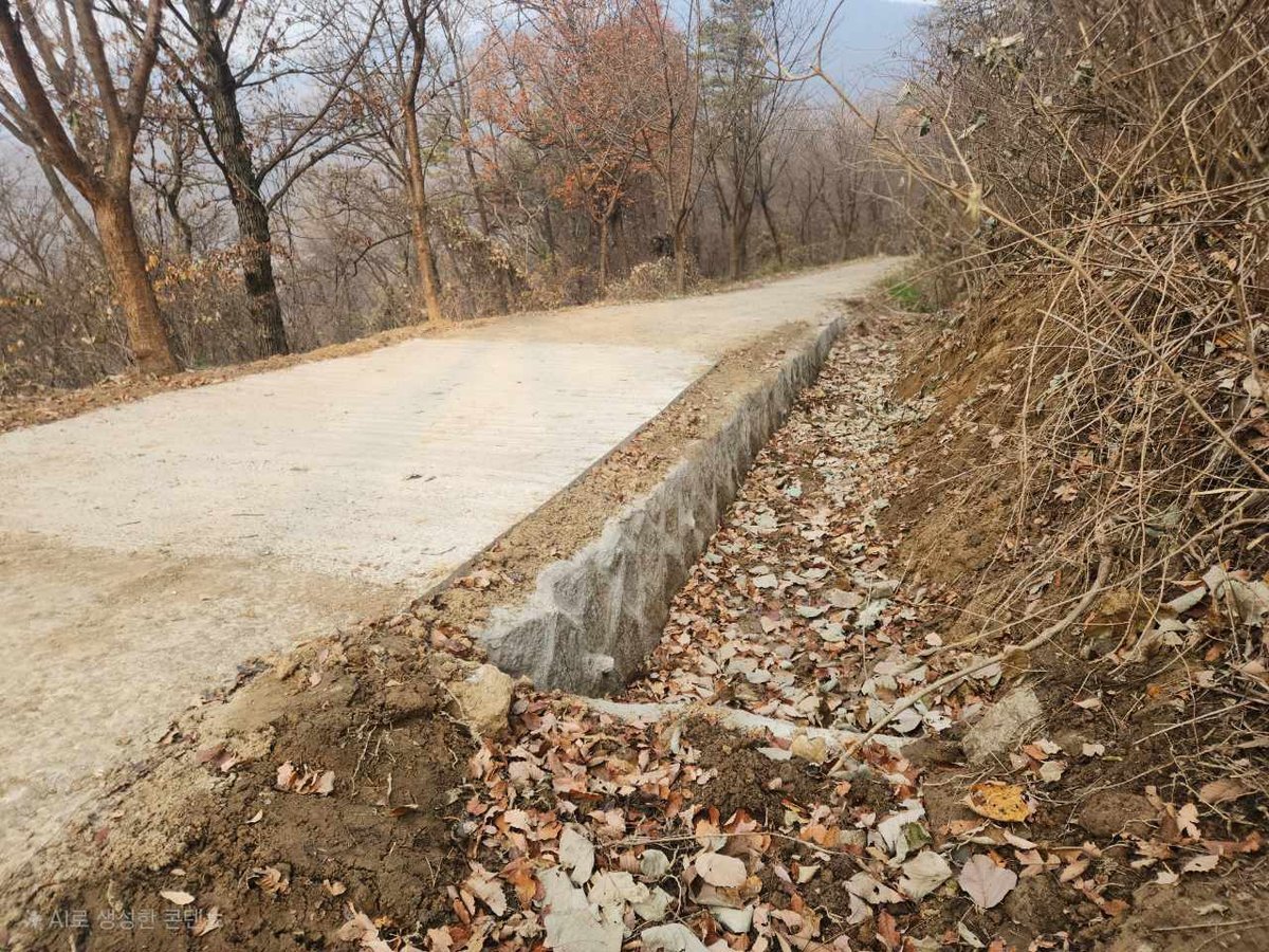 왕산리 임도와 남동 임도에 대한 재해 예방 정비도 함께 진행됐다. 왕산리 임도는 콘크리트 노면이 심하게 침식된 부분을 깬잡석으로 보강하고 흙막이를 설치하여 붕괴 위험을 예방했다. 남동 임도는 강우 시 물이 넘치던 구간에 배수관로를 새로 설치하고 노면을 정비하여 우천 시 보행자와 차량 통행 불편을 해소했다.