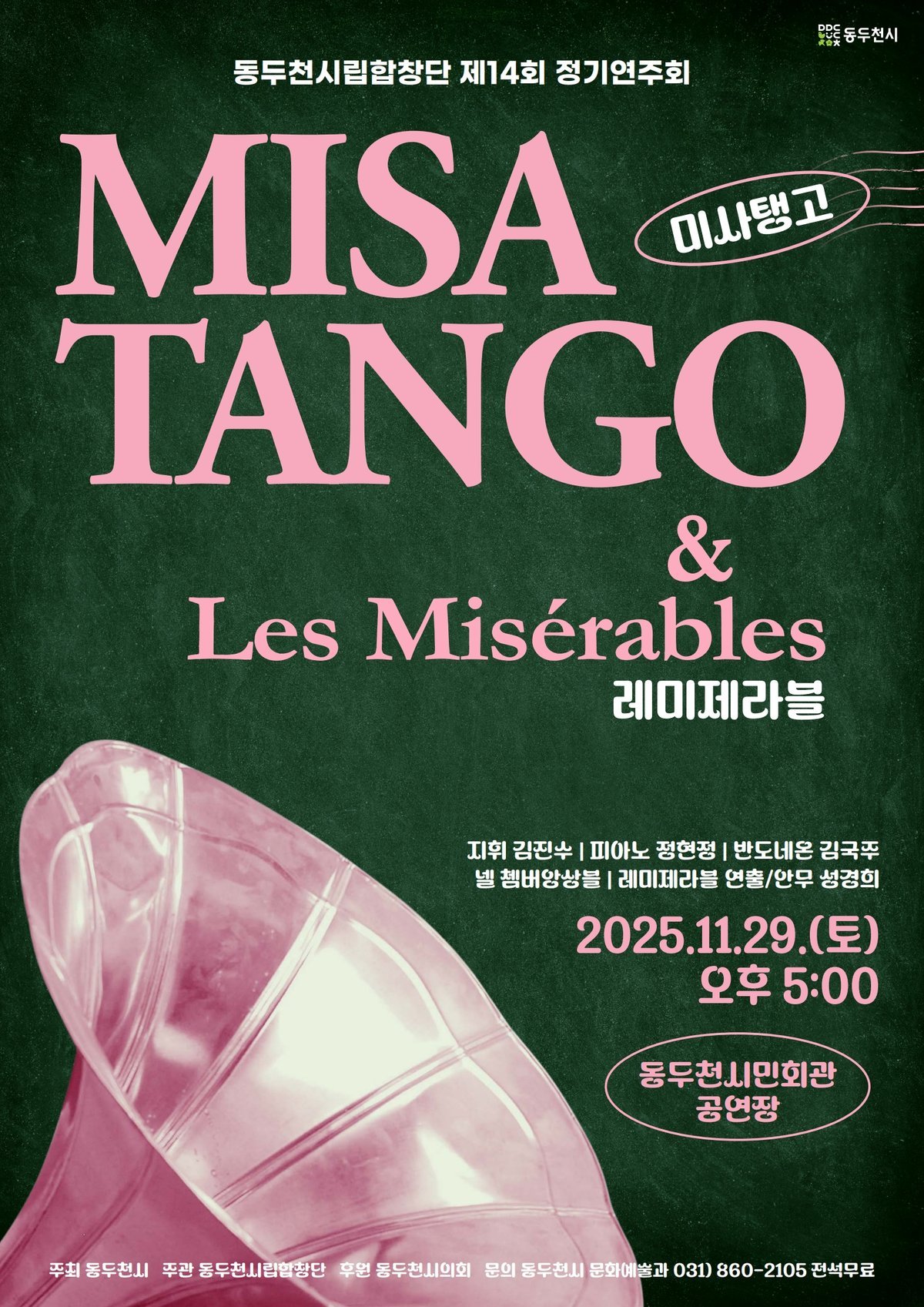 [PEDIEN] 동두천시립합창단이 오는 11월 29일 오후 5시, 시민회관 공연장에서 제14회 정기공연을 개최한다.