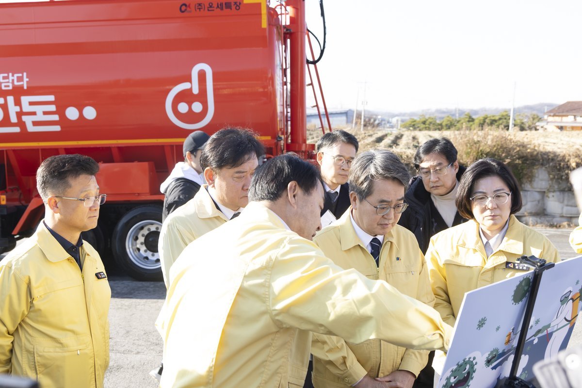 [PEDIEN] 김동연 경기도지사가 겨울철 동물 감염병 예방을 위해 경기도 최남단 안성에 위치한 거점소독시설을 긴급 방문하여 방역 상황을 점검했다.