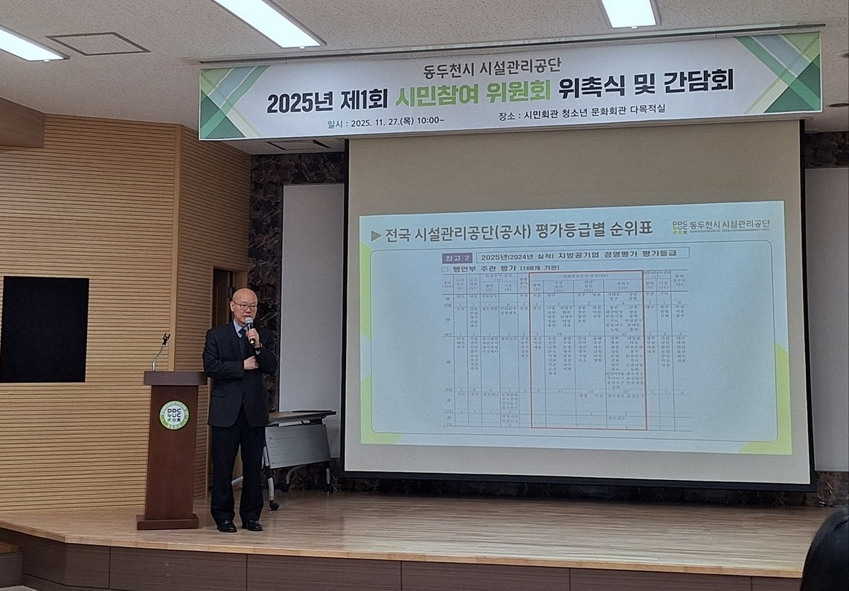 [PEDIEN] 동두천시 시설관리공단은 지난 27일 상패동 시민회관 별관 청소년문화회관 다목적실에서 ‘제1회 시민참여위원회’개회식을 열고, 공단 주요 정책과 사업에 시민이 직접 참여할 수 있는 제도적 기반을 마련했다고 밝혔다.