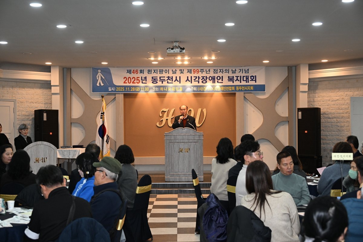 [PEDIEN] 동두천시시각장애인연합회가 지난 28일 동두천농협 하나로웨딩홀에서 '2025년 동두천시 시각장애인 복지대회'를 성공적으로 개최했다.
