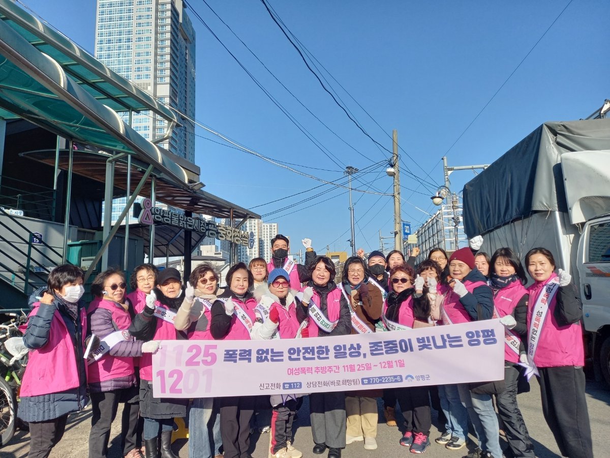 이번 캠페인은 양평역과 물맑은시장 일대에서 진행되었으며, 여성폭력 근절을 위한 사회적 분위기 조성에 초점을 맞췄다.
