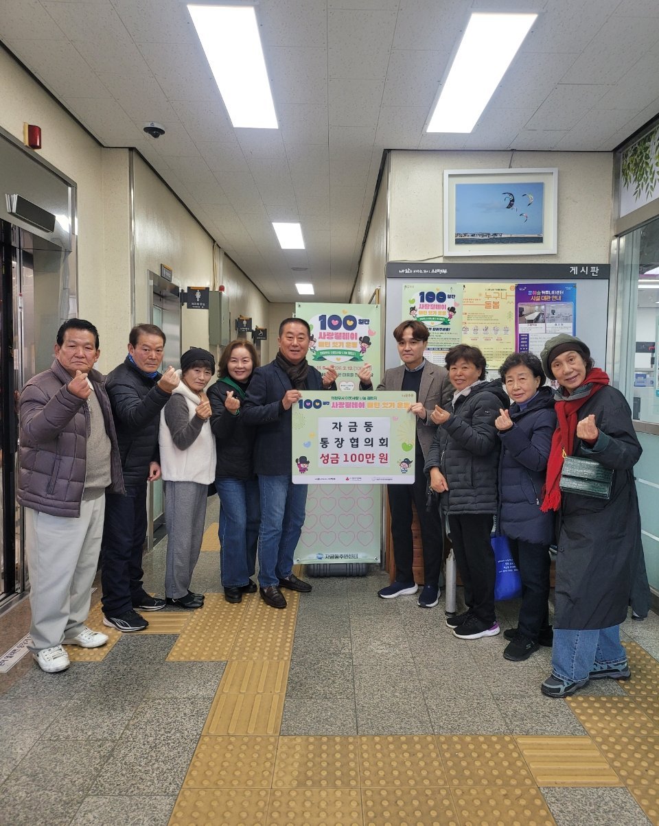 [PEDIEN] 의정부시 자금동주민센터는 11월 28일 자금동 통장협의회가 이웃돕기 성금 100만 원을 기탁하며 ‘100일간 사랑릴레이 배턴 잇기’에 동참했다고 밝혔다.