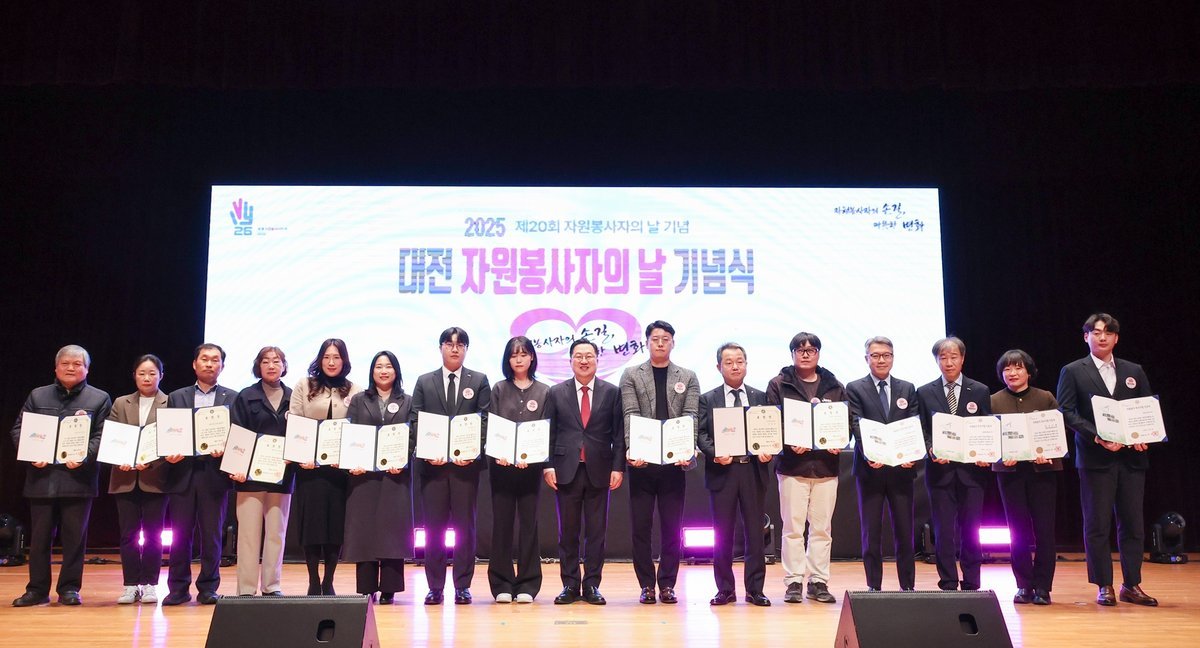 행정안전부장관 표창은 20년간 밑반찬 및 김치 나눔, 연탄 지원 등 꾸준한 봉사활동을 펼쳐온 양순화 대사동자원봉사협의회 회장에게 돌아갔다. 대전시 자원봉사대상은 18년간 독서문화 및 평생학습 활성화에 기여한 유경열 씨가 수상했다.