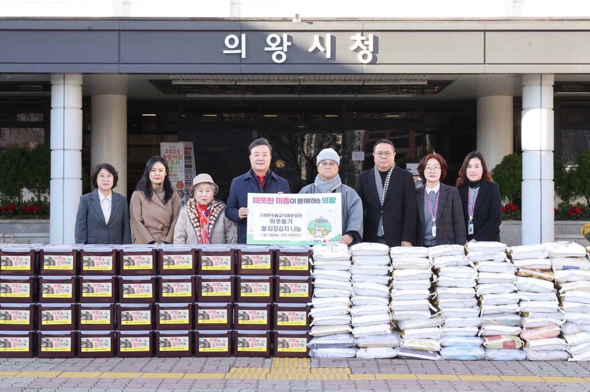 [PEDIEN] 의왕시는 12월 9일 사단법인 한국불교석예문화원에서 지역사회를 위해 사용해 달라며 김치 108상자와 쌀 108포를 기탁 했다고 밝혔다.