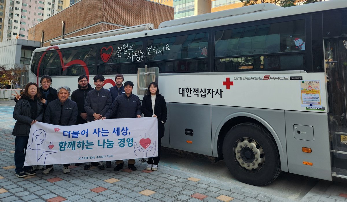 가누다는 연말을 맞아 사회 나눔을 실천하고 임직원의 건강 증진과 환경 개선에 기여하고자 이번 봉사활동을 기획했다. 지난 2일에는 한경대학교에서 임직원 헌혈 행사를 진행, 외국인 근로자 3명도 동참하여 나눔의 의미를 더했다.