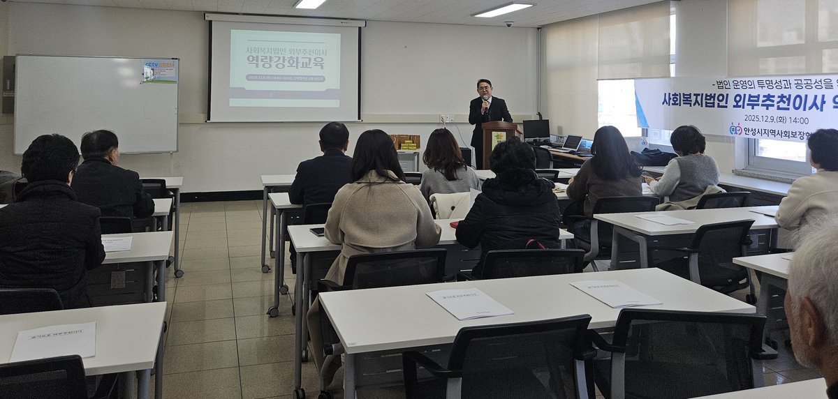 [PEDIEN] 안성시지역사회보장협의체가 사회복지법인의 투명성과 공공성 강화를 위해 외부추천이사 및 후보를 대상으로 역량 강화 교육을 실시했다.