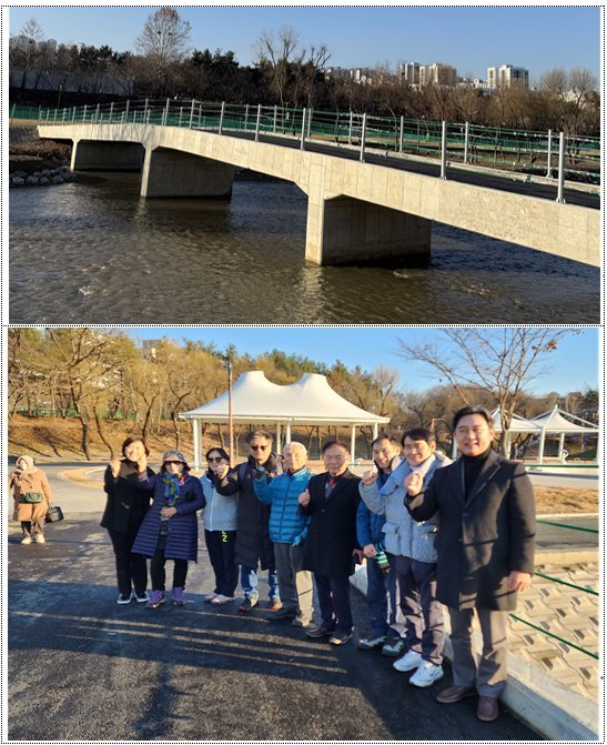 [PEDIEN] 성남시 분당구 맴돌공원에 보도교가 개통되어, 그동안 단절되었던 탄천 보행로가 연결되었다.