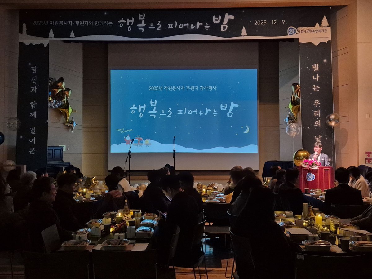 [PEDIEN] 시흥시노인종합복지관은 지난 12월 9일 ‘행복으로 피어나는 밤’을 주제로 ‘2025년 자원봉사자·후원자 감사 행사’를 열었다.