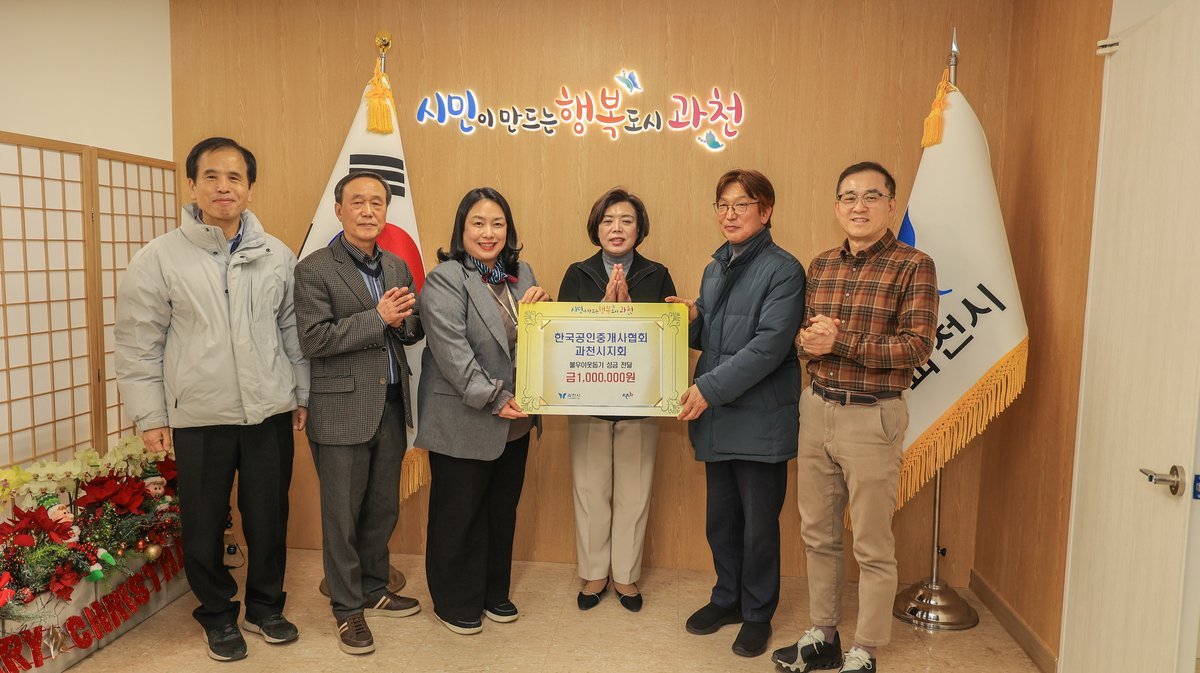 [PEDIEN] 과천시가 한국공인중개사협회 과천시지회로부터 지난 12일, 지역 내 어려운 이웃을 위한 성금 100만원을 전달받았다.