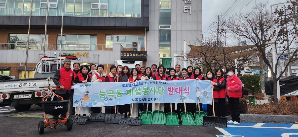 능곡동은 제설 차량의 접근이 어려운 지역의 안전을 확보하기 위해 통장협의회를 비롯한 지역 직능단체 회원 30여 명이 참여하는 제설봉사단을 구성했다. 발대식에서는 제설 장비 사용법 교육과 함께 각자 담당할 제설 구역을 지정받았다.