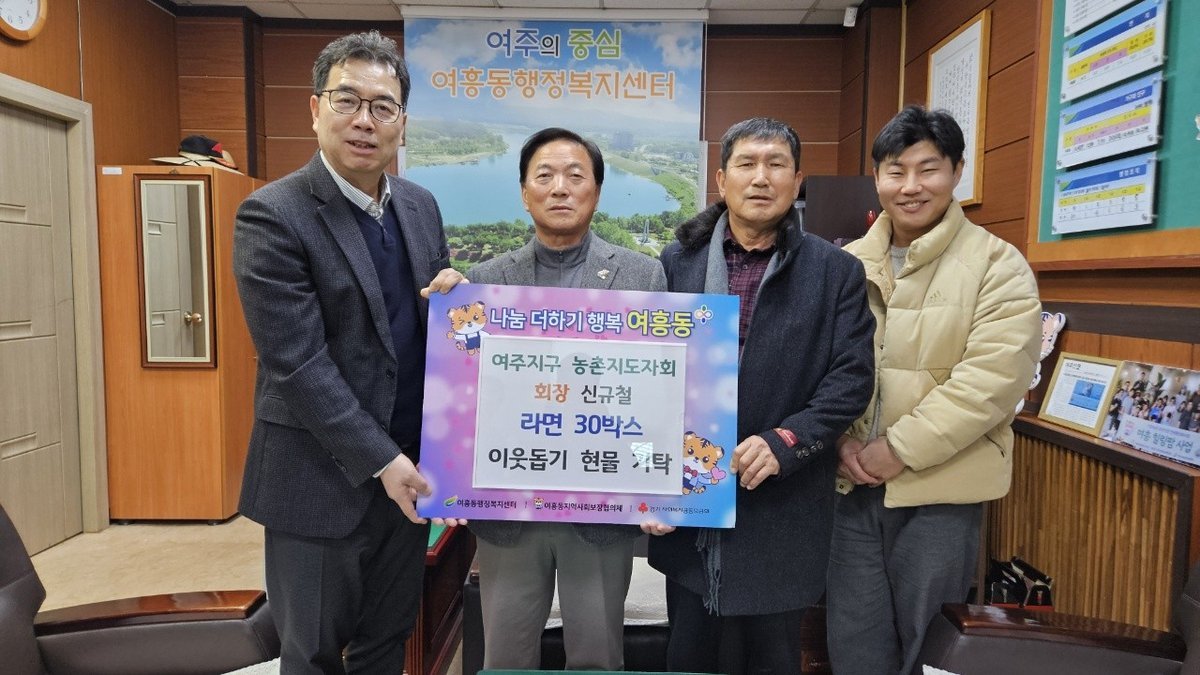 [PEDIEN] 여주지구 농촌지도자회는 지난 12일 연말을 맞아 지역 내 소외된 이웃을 위해 라면 30박스를 여흥동행정복지센터에 기탁했다.