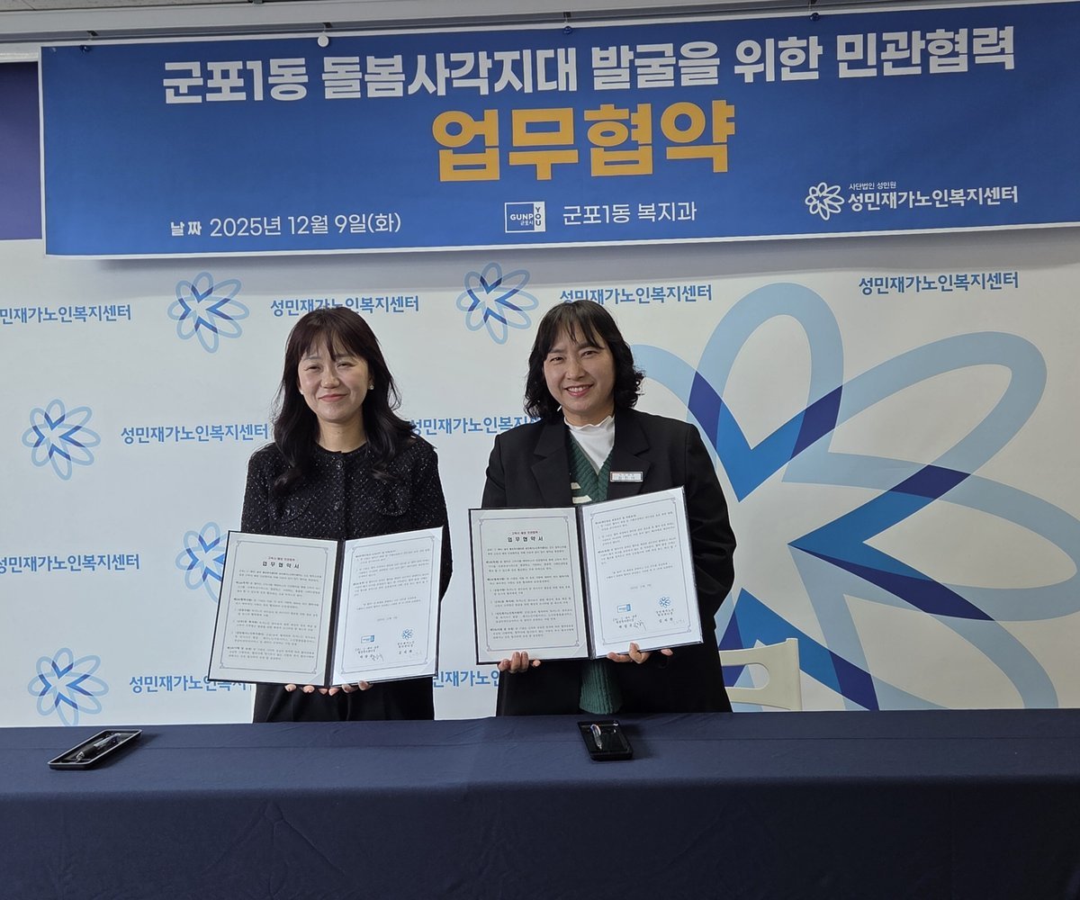 협약을 맺은 성민재가노인복지센터는 노인맞춤돌봄서비스 수행기관으로 독거노인 생활관리사를 활용하여 군포1동 저소득 독거노인을 전수조사하고 고독사 위험군에 포함되는 독거노인을 찾아 군포1동 복지과와 협업하여 노인맞춤돌봄서비스 등을 지원 할 예정이다.