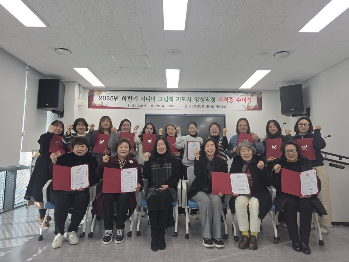 수료생들은 자격증 취득을 통해 앞으로 복지관과 요양기관 등에서 시니어를 위한 그림책 읽기 프로그램을 운영할 수 있는 역량을 갖추게 됐다.