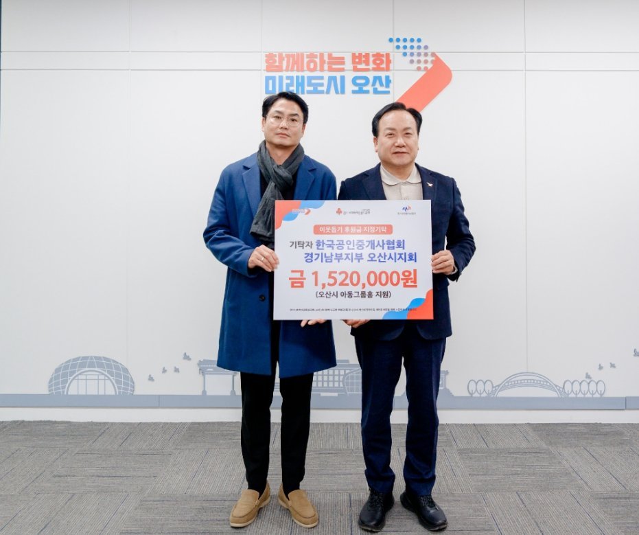 [PEDIEN] 오산시가 한국공인중개사협회 오산시지회로부터 그룹홈 아동 지원을 위한 성금 152만 원을 기탁받았다고 밝혔다.