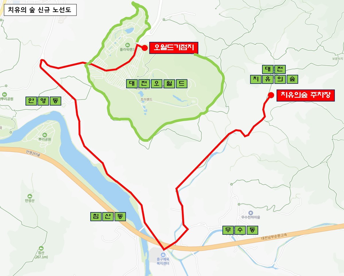 [PEDIEN] 대전시가 치유의 숲 방문객의 편의를 높이기 위해 내년 1월 9일부터 55번 시내버스 노선을 신설한다.