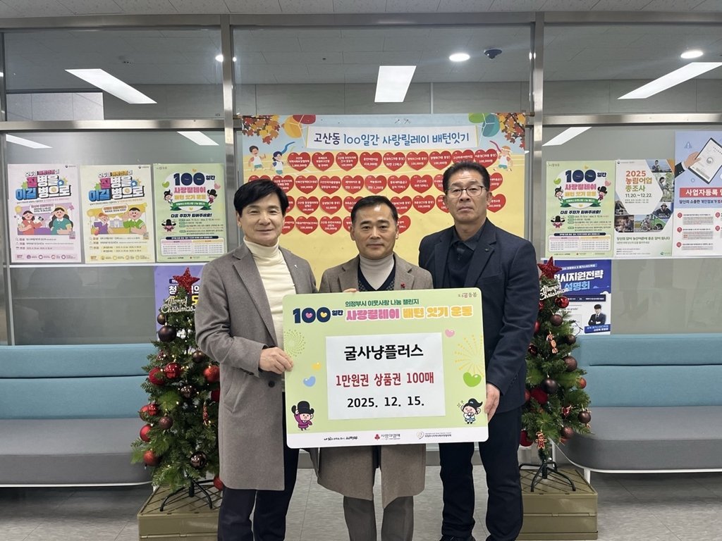이봉득 동장은 “이웃들을 위해 따뜻한 마음을 보내주신 ‘굴사냥플러스’ 관계자분들께 감사드린다”며 “전달해 주신 상품권은 도움이 필요한 가구에 잘 전달하겠다”고 말했다.