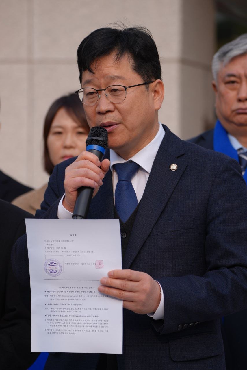안호영,“김용 전) 부원장 무죄취지 파기환송 신속히 판결해야” (국회 제공) [PEDIEN] 더불어민주당 의원들이 김용 전 민주연구원 부원장 사건의 대법원 판결 지연에 대해 신속한 판단을 촉구하고 나섰다.안호영 국회 기후에너지환경노동위원장을 비롯한 민주당 의원들은 대법원 앞에서 기자회견을 열고, 김용 전 부원장 사건에 대한 조속한 선고를 요구하는 의견서를 제출했다.의원들은 이 사건을 단순한 개인 비리 의혹을 넘어 검찰권 남용과 증거 조작 논란까지 겹쳐있는 사안으로 규정하며, 대법원의 장기 계류에 우려를 표했다.특히 핵심 증언 번복, 녹취록 표현 변경 정황, 구글 타임라인 등 반증 자료들을 제시하며 사건의 신빙성을 흔드는 요소들이 누적되었음에도 10개월 넘게 판결이 지연되는 것은 납득하기 어렵다고 지적했다.안호영 위원장은 정치적 목적 수사 의혹이 계속 제기되는 상황에서 대법원이 더 늦기 전에 사법 정의를 바로 세워야 한다고 강조했다. 그는 국민이 이해할 수 있는 결론을 내리는 것이 사법부의 책무라고 덧붙였다.의원들은 기자회견 후 대법원에 무죄 취지 파기환송과 공정한 최종 판단을 요청하는 촉구 의견서를 전달했다. 의견서에는 구글 타임라인 등 과학적 분석 자료, 증언 번복 및 변경 내용, 녹취록 조작 의혹, 반복 구속 과정에서의 표적 수사 주장 등이 담겼다.안 위원장은 이 사건이 단순한 개인의 문제가 아니라 사법 제도에 대한 국민 신뢰가 걸린 문제라며, 대법원의 책임 있는 판단을 서둘러 줄 것을 재차 요청했다. -