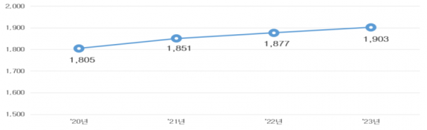 개인 토지의 소유자 수 추이 [PEDIEN] 국토교통부는 ’23년 말 기준 토지소유현황 통계를 공표했다. 우리나라 전체 5,133만명 중 토지를 보유한 인구는 ’22년 1,877만명 대비 1.3% 증가한 1,903만명으로 조사됐다. 세대별로는 총 2,391만 세대 중 62.1%인 1,486만 세대가 토지를 소유하고 있는 것으로 나타났다. 연령별로는 60대, 50대, 70대 순으로 나타났고 성별로는 남성 54.8%, 여성 45.2%로 나타났다. 개인이 소유하고 있는 토지가 46,224㎢로 대부분을 차지하고 법인은 7,327㎢, 비법인은 7,818㎢로 나타났다. 개인소유 토지의 용도지역별 면적은 농림지역 22,563㎢, 관리지역 14,464㎢, 녹지지역 5,818㎢ 순으로 나타났으며 ’22년 46,445㎢ 대비 0.5% 감소했다. 법인은 농림지역 2,361㎢, 관리지역 1,999㎢, 녹지지역 1,081㎢, 순으로 나타났으며 ’22년 7,265㎢ 대비 0.8% 증가했다. 비법인은 농림지역 4,442㎢, 관리지역 1,714㎢ 녹지지역 930㎢, 순으로 나타났으며 ’22년 7,817㎢ 대비 1㎢ 증가했다. 전국 지방자치단체에서 등록한 지적전산자료를 기초로 작성한 토지소유현황 통계는 부동산 정책 및 학술연구자료 등으로 활용되고 있다. ’23년 토지소유현황 통계 상세자료는 7월 18일부터 국토교통부 통계누리, 통계청 국가통계포털에서 확인할 수 있다. -
