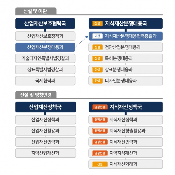 국가 지식재산 정책 컨트롤타워, ‘지식재산처’ 출범 [PEDIEN] 10월 1일 정부조직법 개정안 시행으로 특허청이 국무총리실 소속 ‘지식재산처’로 승격되면서 새롭게 출범한다. 지식재산처의 출범은 다양한 형태의 지식재산을 통합·관리해 미래를 선도하는 산업혁신 기반을 마련하고 지식재산의 창출과 활용, 보호 기능을 종합적으로 수립하기 위한 것이다. 향후 지식재산처는 국가 지식재산 정책의 컨트롤 타워로서 범정부 지식재산 정책의 수립과 총괄·조정 업무를 수행하게 된다. 이번 출범에 맞춰 핵심기능을 강화하기 위한 조직 개편도 이뤄졌다. 기존 1관 9국 1단 57과, 3소속기관, 1,785명 규모였던 조직이 1관 10국 1단 62과, 3소속기관, 1,800명으로 확대 개편됐다. 조직개편의 가장 큰 변화는 지식재산분쟁대응국의 신설이다. 기존 과 단위에서 수행하던 업무를 국 단위로 확대해, 지식재산 분쟁 발생 시 국가 차원의 신속한 대응을 지원한다. 또한, 부처별 분산되어 있는 지식재산 업무를 총괄·조정해 보호 사각지대가 발생하지 않도록 하고 신규 지식재산에 대한 보호 장치도 마련할 예정이다. 지식재산의 창출·활용 및 거래를 담당하는 전담 지원조직도 마련된다. R&D를 통해 고품질 지식재산을 확보하고 거래와 사업화를 통해 수익을 창출해 R&D 재투자로 연계되는 “지식재산 선순환 생태계”를 제공하기 위함이다. 지식재산 관점에서 정부 R&D와 활용 정책이 만들어지도록 부처 간 협업을 강화함으로써, 우수 지식재산이 국가 경제의 성장동력으로 거듭나도록 지원할 방침이다. 지식재산처는 국가 지식재산 정책의 컨트롤 타워로서 우리나라 산업 경쟁력 확보를 지원하는 범부처 정책을 수립하는 것을 최우선 과제로 추진하는 한편 앞으로 우리 국민들과 기업들이 만든 지식재산이 시장에서 활발히 거래되고 모두가 지식재산 분쟁 걱정 없이 마음껏 활동할 수 있는 환경을 구축해 나갈 계획이다. -