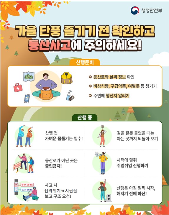 단풍철 10월, 등산사고 연중 최다... 실족·조난에 각별히 주의해야