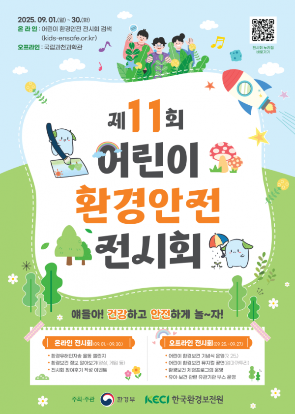 박연재 환경부 환경보건국장은 “어린이들은 성인보다 환경유해인자에 더 민감해 어릴 때부터 건강한 생활습관을 익히도록 돕는 것이 중요하다”며 “앞으로도 아이들 눈높이에 맞춘 체험형 환경안전 교육과 홍보를 꾸준히 확대해 나가겠다”고 밝혔다.