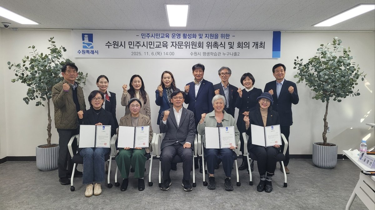 수원특례시 민주시민교육 활성화 위해 수원시 민주시민교육 자문위원회 구성 [PEDIEN] 수원시가 민주시민교육 활성화를 위해 각계 전문가로 구성된 자문위원회를 출범시키고 본격적인 활동에 들어갔다.자문위원회는 민주시민교육 정책 방향 설정부터 운영 체계 개선, 시민 참여 확대 방안 등 교육 전반에 대한 심의 및 자문 역할을 수행할 예정이다.지난 6일 수원시 평생학습관에서 열린 위촉식에서는 현근택 제2부시장을 위원장으로 임명하고, 시의원, 유관기관 관계자, 교수, 시민단체 대표 등 총 15명의 위원을 위촉했다.자문위원들은 앞으로 2년간 민주시민교육 발전을 위한 다양한 의견을 제시하고 정책 결정에 참여하게 된다.이날 첫 회의에서는 2025년 민주시민교육 운영 현황을 보고받고, 교육 활성화 방안에 대한 심도 깊은 논의를 진행했다.수원시는 자문위원회의 전문성을 바탕으로 시민들이 주도적으로 참여하는 민주적 학습 공동체를 조성하는 데 적극적으로 지원할 계획이다.현근택 제2부시장은 “자문위원회가 민주시민교육의 현장성과 전문성을 담보하는 협력 플랫폼으로 발전하길 기대한다”고 밝혔다. -
