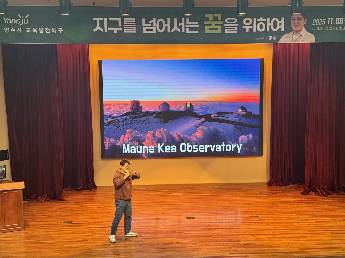 양주시 천문학자 항성 박사 초청 지구를 넘어서는 꿈을 위하여 특강 성료 [PEDIEN] 양주시는 지난 6일 경기섬유종합지원센터 대강당에서 천문학자 항성 박사를 초청해 진행한 ‘양주시 교육발전특구 전문가특강’두 번째 강연을 성황리에 마무리했다.이번 특강은 ‘지구를 넘어서는 꿈을 위해’를 주제로 천문학과 우주과학의 다양한 이야기를 흥미롭게 풀어냈다.항성 박사는 블랙홀, 암흑물질 등 과학 다큐멘터리나 교과서에서만 접하던 주제들을 쉽고 재미있게 설명해 학생들과 시민들의 큰 호응을 얻었다.강연 후 진행된 질의응답 시간에서는 우주와 과학에 대한 아이들의 궁금증을 직접 해결해 줬으며 특히 천문학자를 꿈꾸는 청소년들에게 “호기심으로 생각했던 내용들이 현실이 되어가고 있다”며 “끊임없이 질문하고 배우며 꿈을 키워가길 바란다”는 진심 어린 조언을 전했다.양주시는 이번 특강을 통해 미래 과학 분야에 대한 지역 청소년들의 흥미를 높이고 창의적 사고력과 진로 탐색의 기회를 제공하는 등 교육발전특구의 취지를 이어가고 있다.앞으로도 다양한 분야의 전문가를 초청해 학생과 시민이 함께 성장하는 교육도시 양주를 만들어갈 계획이다. -
