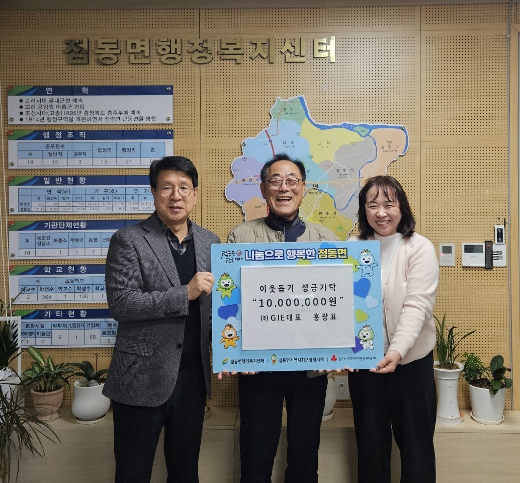 GIE 대표 홍광표, 2025년 점동면에 누적 3000만원 기탁 (여주시 제공) [PEDIEN] GIE의 홍광표 대표가 2025년 한 해 동안 점동면에 총 3천만원의 기부금을 쾌척하며 지역사회에 따뜻한 온정을 전하고 있다.홍 대표의 꾸준한 나눔은 지역사회 발전과 취약계층 지원에 큰 힘이 되고 있다.지난 16일, 홍 대표는 경기공동모금회를 통해 1천만원을 기탁했다. 이번 기탁을 포함하여 올해에만 누적 3천만원의 성금을 점동면에 전달했다.이처럼 홍 대표의 나눔은 단순한 일회성 후원을 넘어, 한 해 동안 지속적으로 이어진다는 점에서 더욱 의미가 깊다.홍 대표는 평소 “이웃과 함께하는 나눔이 지역사회를 더욱 따뜻하게 만든다”는 철학을 강조하며 꾸준히 기부와 사회공헌 활동을 이어왔다.그의 따뜻한 마음은 지역사회에 긍정적인 영향을 미치고 있다.기탁된 성금은 경기공동모금회를 통해 점동면 지역사회보장협의체와 연계되어, 관내 저소득 가구와 독거노인 등 취약계층의 생활 안정과 복지 증진을 위한 다양한 지원사업에 사용될 예정이다.신광식 점동면장은 “2025년 한 해 동안 점동면을 위해 큰 나눔을 실천해 주신 홍광표 대표께 깊은 감사를 드린다”고 말했다.이어 “지속적인 기부와 따뜻한 관심이 점동면을 더욱 단단한 복지공동체로 만드는 데 큰 힘이 될 것”이라고 덧붙였다. -