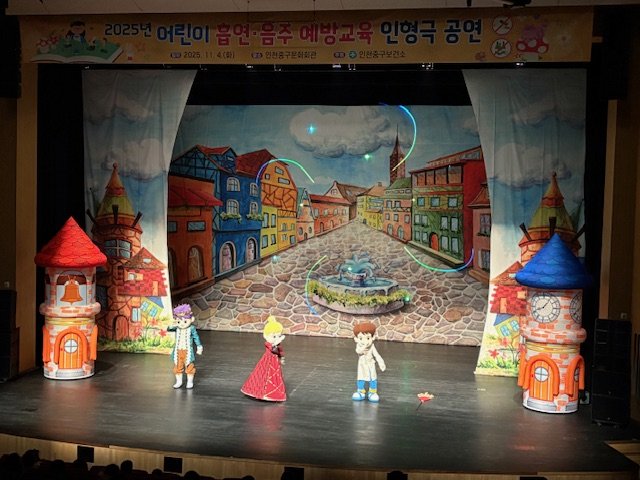 어린이 흡연예방교육 인형극 공연 (인천중구 제공) [PEDIEN] 인천 중구보건소가 지난 4일 중구문화회관에서 관내 어린이집과 유치원 유아들을 대상으로 흡연·음주 예방 인형극 공연을 펼쳤다.이번 공연은 어린이들에게 흡연과 음주의 유해성을 쉽고 재미있게 전달하고, 금연과 절주의 중요성을 자연스럽게 인식시키기 위해 기획됐다.인형극은 아이들의 눈높이에 맞춘 캐릭터 중심의 이야기와 노래, 생동감 넘치는 연출로 구성되어 큰 호응을 얻었다.공연장에는 마술쇼, 레이저쇼, 포토존 등 다양한 볼거리가 마련되어 아이들이 더욱 즐겁게 참여할 수 있도록 했다.이번 인형극은 단순한 관람을 넘어 간접흡연과 음주의 위험성을 깨닫고 스스로 건강을 지키는 습관을 형성하는 데 기여했다는 평가다.공연 후에는 어린이들이 함께 “흡연·음주 안 돼요!”를 외치는 예방 캠페인이 진행되어 건강생활 실천의 중요성을 다시 한번 강조했다.정한숙 중구보건소장은 흡연과 음주 시작 연령이 낮아지는 현실을 감안하여 유아기부터 올바른 건강 가치관을 심어주는 교육의 중요성을 강조했다.더불어 앞으로도 다양한 형태의 금연·절주 교육을 통해 아이들이 건강하게 성장할 수 있도록 지속적으로 노력할 것을 밝혔다. -