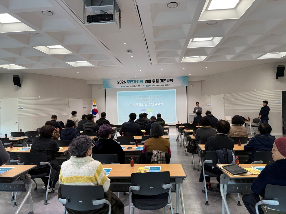 미양면, 2026년 주민자치회 출범 앞두고 기본교육 실시 (안성시 제공) [PEDIEN] 미양면이 2026년 주민자치회 출범을 앞두고 주민자치위원 신청자들을 대상으로 기본교육을 실시하며 본격적인 준비에 나섰다.이번 교육은 주민자치회 위원이 되기 위한 필수 과정으로, 지난 12월 5일부터 12일까지 총 3회에 걸쳐 진행됐다. 미양면은 앞서 21일간의 모집 공고를 통해 위원 신청자를 모집했다.교육은 주민자치회에 대한 기본 이해를 돕고, 마을 의제 수립 및 주민총회 기획 실전 등 실질적인 운영 역량을 키우는 데 초점을 맞췄다. 신청자들은 사례 중심 학습을 통해 향후 주민자치회의 주역으로 활동할 기반을 다졌다.기본교육을 이수한 신청자 중 최종 위원을 선발하며, 오는 12월 29일 위촉식을 통해 2026년부터 미양면 주민자치회가 공식 출범할 예정이다.손인철 미양면장은 “2026년 주민자치회 출범은 주민 스스로 마을의제를 발굴하고 실행하는 진정한 자치의 시작”이라며, “이번 기본교육이 주민자치 활동의 초석을 다지는 중요한 과정인 만큼, 위원들이 책임감과 전문성을 갖고 활동할 수 있도록 적극 지원하겠다”고 밝혔다.