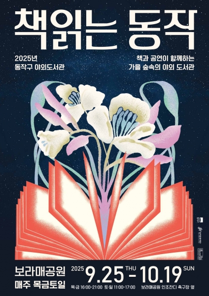 동작구, 보라매공원에 야외도서관 ‘책 읽는 동작’ 개장 … 가을 정원에서 힐링 독서 [PEDIEN] 동작구가 독서의 계절 가을을 맞아 지난 25일 보라매공원에 책과 공연이 어우러진 야외도서관 ‘책 읽는 동작’을 개장했다고 밝혔다. 야외도서관은 현재 성황리에 열리고 있는 ‘2025 서울국제정원박람회’ 와 연계해 ‘책 읽는 보라매정원’에 조성됐다. 오는 10월 19일까지 매주 목~일요일에 운영된다. 목·금요일은 오후 4시부터 9시까지, 토·일요일은 오전 11시부터 오후 5시까지 이용할 수 있다. 운영 공간은 약 3,000㎡ 규모로 △독서공간 ‘동작책방’ △야외무대 ‘동작마당’ △체험공간 ‘동작하다’ △놀이공간 등 4개 테마로 구성됐다. 먼저 ‘동작책방’에는 1천여 권의 도서가 비치돼, 피크닉매트나 빈백에서 자유롭게 책을 읽을 수 있다. ‘동작마당’에서는 음악·퍼포먼스 등 문화 공연이 펼쳐지며 지역 청년 예술가를 위한 버스킹존을 비롯해 글나무 존, 컬러링 월 등이 함께 마련됐다. △그림책 도슨트 △모루꽃, 키링 만들기 △마술 공연 등 다양한 참여형 프로그램이 진행되는 ‘동작하다’, △보드게임 △모래놀이 등 아이들과 부모가 같이 즐길 수 있는 ‘놀이공간’도 눈길을 끈다. 아울러 10월 2일 오후 5시에는 야외무대에서 박일하 구청장을 비롯한 내빈과 지역 주민이 참석한 가운데 개장 기념행사가 개최될 예정이다. 운영 일정은 기상 상황 등에 따라 변동될 수 있으며 ‘동작구 야외도서관 인스타그램’에서 확인 가능하다. 박일하 동작구청장은 “도심 속 자연에 마련된 야외도서관에서 독서와 문화를 즐기며 힐링하시길 바란다”며 “앞으로도 구민들이 일상에서 다양한 문화생활을 누릴 수 있도록 인프라를 확대해 나가 -
