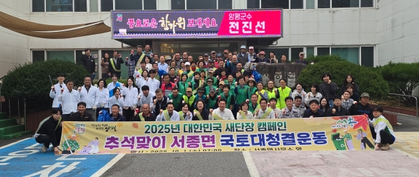 서종면, 추석맞이 국토대청결 운동 실시 [PEDIEN] 양평군 서종면은 지난 10월 1일 정부의 ‘2025년 대한민국 새단장 캠페인’ 주간을 맞아 공무원, 유관 기관·단체, 지역 주민 등과 함께 서종면 문호리 일원에서 추석맞이 국토대청결 운동을 실시했다고 밝혔다. 이날 행사에는 양서농협, 이장협의회, 남녀 새마을지도자, 주민자치위원회, 지역사회보장협의체, 친환경농업인협의회 등 150여명이 자발적으로 참여해 시가지와 북한강변 산책로 마을 안길 등지에 방치된 쓰레기를 수거하며 구슬땀을 흘렸다. 전진선 양평군수는 “명절을 앞둔 바쁜 시기에도 깨끗한 매력 서종을 만들기 위해 적극적으로 동참해 주신 모든 기관·단체와 주민 여러분께 깊이 감사드린다”고 말했다. 홍주표 서종면장도 “이번 대청결 운동은 면민과 귀성객 모두에게 큰 추석 선물이 되었을 것”이라며 “앞으로도 지속적인 환경 정비 활동을 통해 서종면의 생활환경을 더욱 개선해 나가겠다”고 밝혔다. 한편 서종면은 이번 활동을 일회성 행사에 그치지 않고 주민이 주도하는 자율적인 환경정화 분위기를 조성해 나갈 계획이다. -