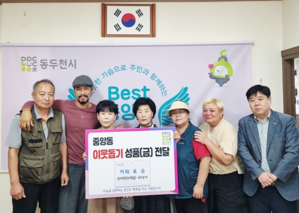 동두천 커피앤유, 중앙동 행정복지센터에 컵라면 60상자 기탁