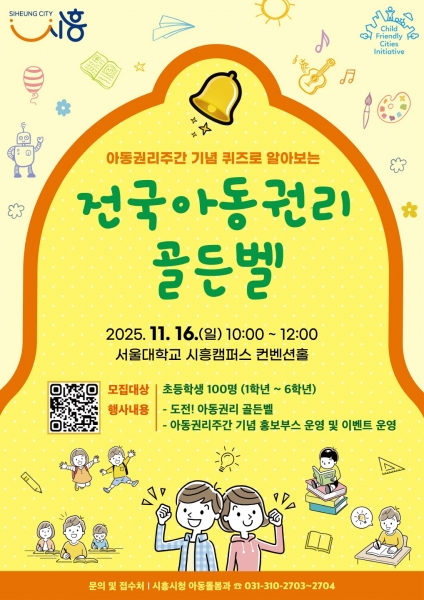 [PEDIEN] 시흥시는 오는 11월 16일 오전 10시, 서울대학교 시흥캠퍼스 컨벤션홀에서 열리는 ‘퀴즈로 알아보는 전국 아동권리 골든벨’에 참가할 초등학생을 10월 31일까지 모집한다.