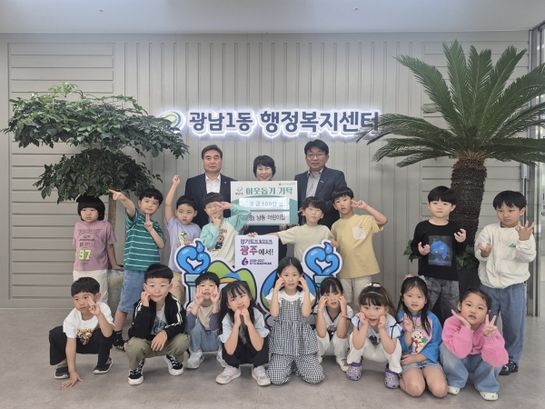 남동어린이집, 광주시 광남1동에 아나바다 플리마켓 수익금 100만원 기탁 [PEDIEN] 남동어린이집 원아들과 교직원 20여명은 지난달 29일 광주시 광남1동 행정복지센터를 방문해 어려운 이웃을 돕기 위한 성금 100만원을 기탁했다. 이번 기탁은 어린이집에서 추진한 ‘우리 아이들이 지구를 지켜요’ 환경 프로젝트의 일환으로 열린 아나바다 플리마켓 수익금으로 마련됐다. 행사에는 원아들과 학부모, 교직원이 참여해 자원 절약과 환경보호의 의미를 되새기며 나눔의 뜻을 더했다. 김경순 원장은 “플리마켓을 통해 아이들과 함께 환경 보호의 중요성을 배우고 동시에 나눔을 실천할 수 있어 더욱 뜻깊다”며 “앞으로도 아이들이 올바른 인성과 따뜻한 마음을 지닌 사회 구성원으로 성장할 수 있도록 노력하겠다”고 말했다. 이에 대해 전동진 동장은 “지역의 어려운 이웃을 위해 나눔을 실천해 주신 남동어린이집 원생들과 학부모, 교직원분들께 깊이 감사드린다”며 “기탁해 주신 성금은 도움이 필요한 이웃을 위해 소중히 사용하겠다”고 전했다. 한편 광남1동은 이번 성금을 지역 내 저소득 가정과 복지 사각지대에 놓인 주민들을 지원하는 데 활용할 예정이다.