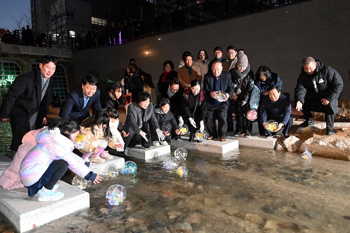 [PEDIEN] 부평구가 굴포천에서 진행한 '별빛굴포 은하수길' 행사가 지난 11일 성황리에 마무리됐다.이번 행사에는 차준택 부평구청장을 비롯해 국회의원, 구의원, 그리고 1천 명이 넘는 주민들이 참여하여 굴포천 일대를 빛으로 가득 채웠다.행사는 부평구립소년소녀합창단의 아름다운 공연으로 시작을 알렸다. 이후 은하수길 점등식과 굴포천 LED 소원볼 띄우기, 은하수길 보행 등 다양한 프로그램이 진행되어 참여자들의 눈길을 사로잡았다.특히 주민들의 새해 소망을 담은 LED 소원볼이 굴포천을 따라 흘러가며 겨울밤을 아름답게 수놓아 큰 호응을 얻었다. 은하수길 보행에 참여한 주민들은 초롱 무드등을 들고 반짝이는 산책로를 거닐며 특별한 야간 경관을 즐겼다.행사장에서는 굴포천 그림그리기 대회 참여작 전시와 초롱 무드등, 소원볼 만들기 체험 등 다양한 참여형 프로그램이 운영되어 만족도를 높였다. 또한 '희망나무 메시지 쓰기' 프로그램에는 60여 명의 주민이 참여해 새해 소망과 응원의 메시지를 남기며 따뜻한 분위기를 더했다.차준택 구청장은 굴포천 은하수길이 주민들에게 휴식과 힐링을 제공하는 공간이 되기를 바란다고 전했다. 더불어 주민들의 지속적인 관심과 참여를 당부하며 굴포천을 아끼고 사랑해 줄 것을 강조했다.