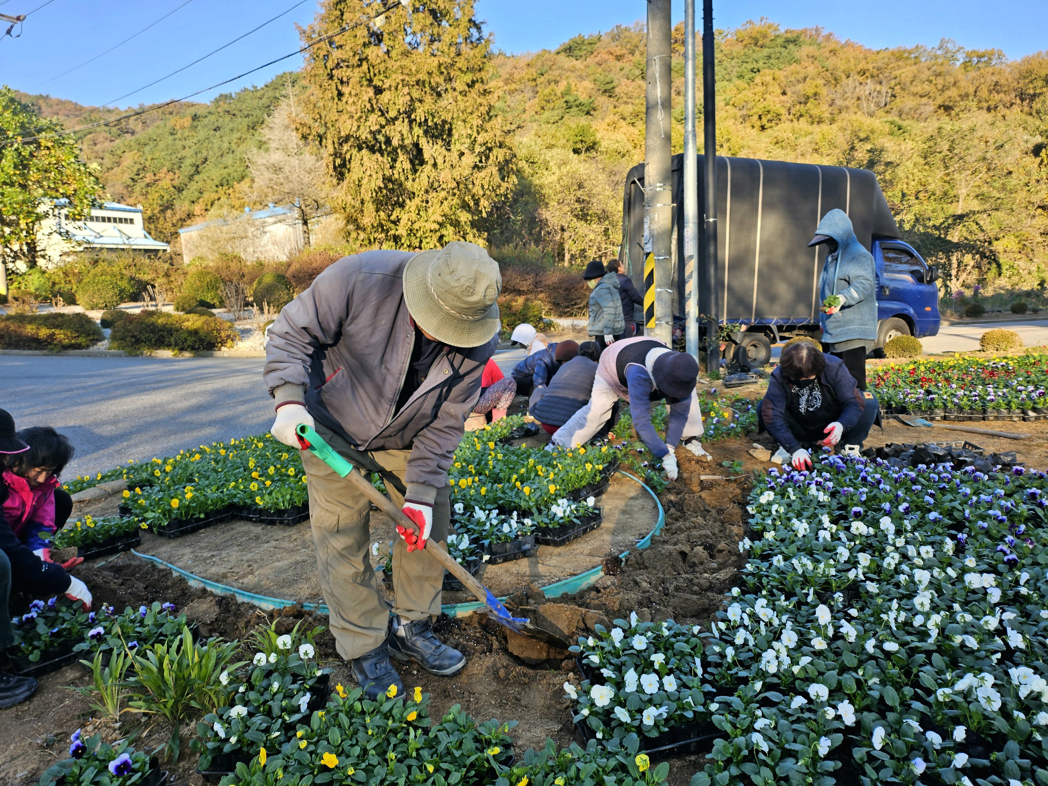 강화군 양사면, 소고개 삼거리에 겨울 팬지 정원 조성