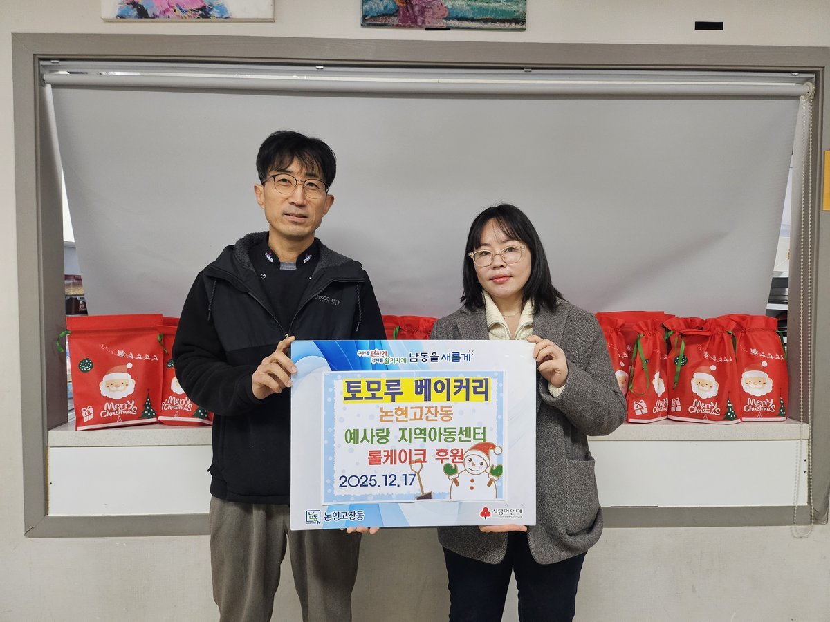 토모루베이커리 인천논현점, 논현고잔동에 사랑의 빵 후원 (남동구 제공) [PEDIEN] 토모루베이커리 인천논현점이 크리스마스를 맞아 인천시 남동구 논현고잔동의 지역 아동들에게 따뜻한 마음을 전했다.롤케이크와 사과주스 100세트를 예사랑 지역아동센터와 취약계층 아동들에게 전달하며 특별한 크리스마스 선물을 선사했다.토모루베이커리 인천논현점은 이전부터 꾸준히 지역사회에 나눔을 실천해왔다. 매달 정성스럽게 구운 빵을 논현고잔동 지역아동센터와 사회복지시설 등에 기부하며 따뜻한 온정을 나눠왔다.특히 이번 크리스마스에는 아이들을 위해 특별히 산타 주머니에 롤케이크와 사과주스를 담아 더욱 의미있는 선물을 준비했다.한상환 토모루베이커리 대표는 “지역 아동센터와 취약계층을 위한 빵을 후원하며 큰 보람을 느낀다”며 “앞으로도 지역사회를 위한 꾸준한 나눔을 실천하도록 노력하겠다”고 밝혔다.박강선 예사랑 지역아동센터장은 “매주 신선한 빵을 지원해 주시는 덕분에 센터 아동들이 따뜻한 관심과 사랑을 느끼며 건강하게 성장하고 있다”며 감사의 마음을 전했다.토모루베이커리의 지속적인 나눔 활동은 지역사회에 훈훈한 감동을 주고 있으며, 앞으로도 따뜻한 사회를 만들어가는 데 기여할 것으로 기대된다. -