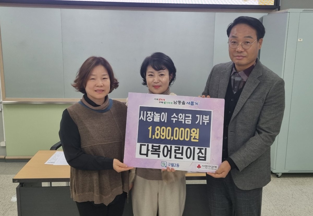 다복어린이집, 구월2동에 이웃돕기 성금 189만 원 기부 (남동구 제공) [PEDIEN] 인천 남동구 구월2동에 위치한 다복어린이집이 이웃돕기 성금 189만원을 기탁하며 따뜻한 온정을 전했다.이번 성금은 다복어린이집 원생들이 직접 참여한 시장놀이를 통해 마련되었으며, 아이들의 따뜻한 마음에 공감한 학부모와 교직원들의 적극적인 참여로 그 의미를 더했다.다복어린이집은 지난해 12월에도 시장놀이 수익금 약 100만원을 기탁하는 등 꾸준히 이웃사랑을 실천하고 있다. 김나현 원장은 구월2동 지역사회보장협의체 위원으로도 활동하며 지역사회 나눔 문화 확산에 기여하고 있다.전달된 성금은 구월2동 행정복지센터를 통해 복지 사각지대에 놓인 어려운 이웃들을 위해 사용될 예정이다.김나현 원장은 “추운 겨울, 아이들의 따뜻한 마음이 어려운 이웃들에게 잘 전달되어 훈훈한 겨울을 보내는 데 조금이나마 보탬이 되기를 바란다”라고 전했다.정창범 구월2동장은 “어려운 이웃을 위해 따뜻한 손길을 내밀어준 다복어린이집 원생, 학부모, 교직원 모두에게 진심으로 감사드린다”라며 “기탁해주신 소중한 성금은 아이들의 따뜻한 마음을 담아 꼭 필요한 곳에 전달하겠다”라고 밝혔다. -